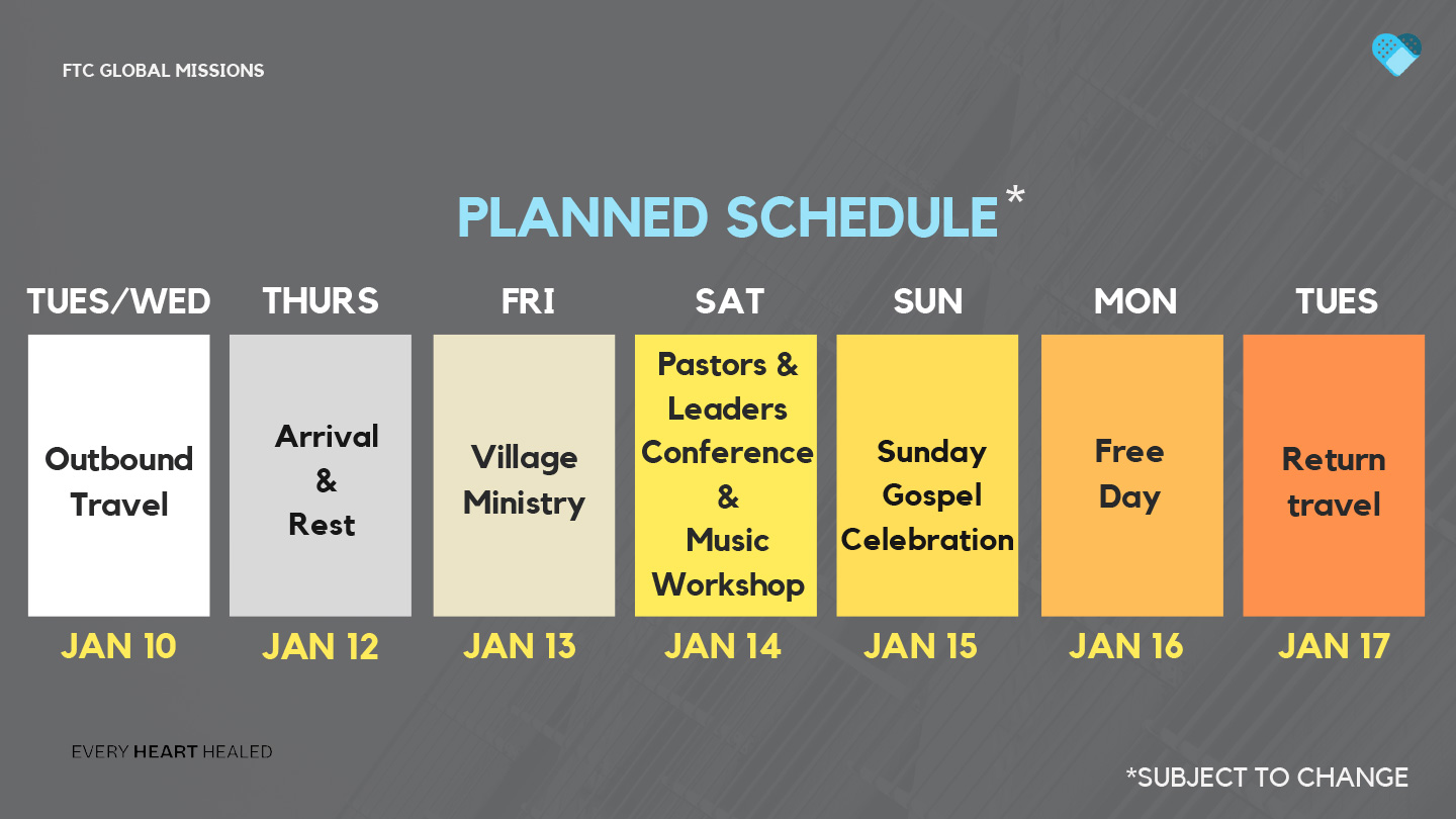 Taking part in this extraordinary trip will be a life-changing experience that will leave you with lasting memories, profoundly change your perspective, and allow you to see things you never imagined, and impact our FTC churches in incredible ways.